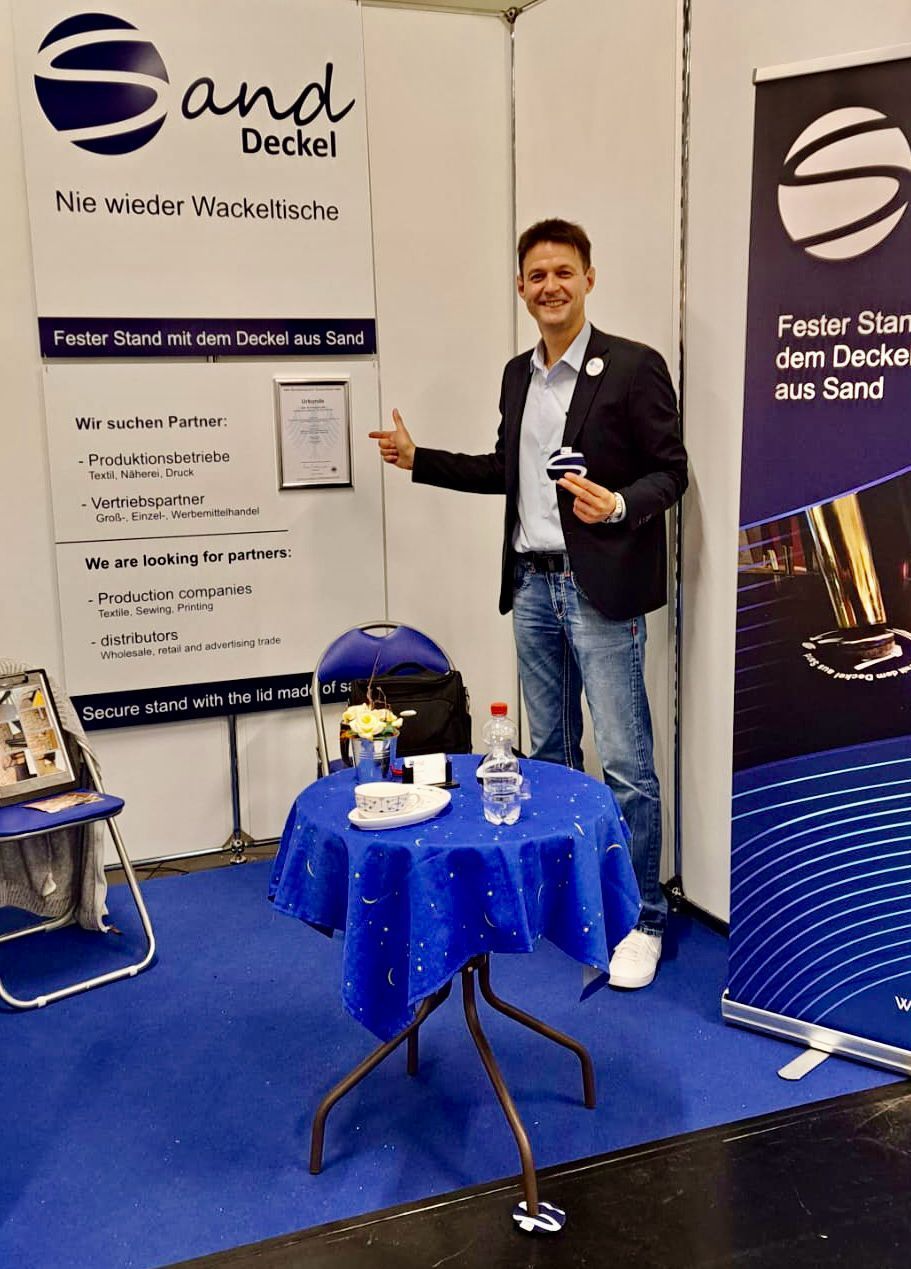 Der Sanddeckel besteht aus einem hochwertigen und reißfesten Gewebe und ist mit einem speziellen Sandgemisch gefüllt, um alle Unebenheiten bei wackelnden Tisch- oder Stuhlbeinen auszugleichen.